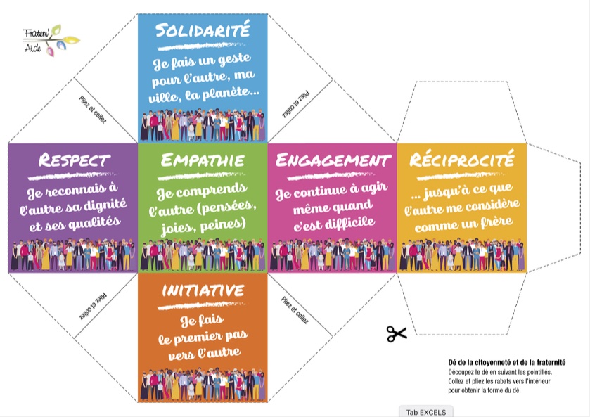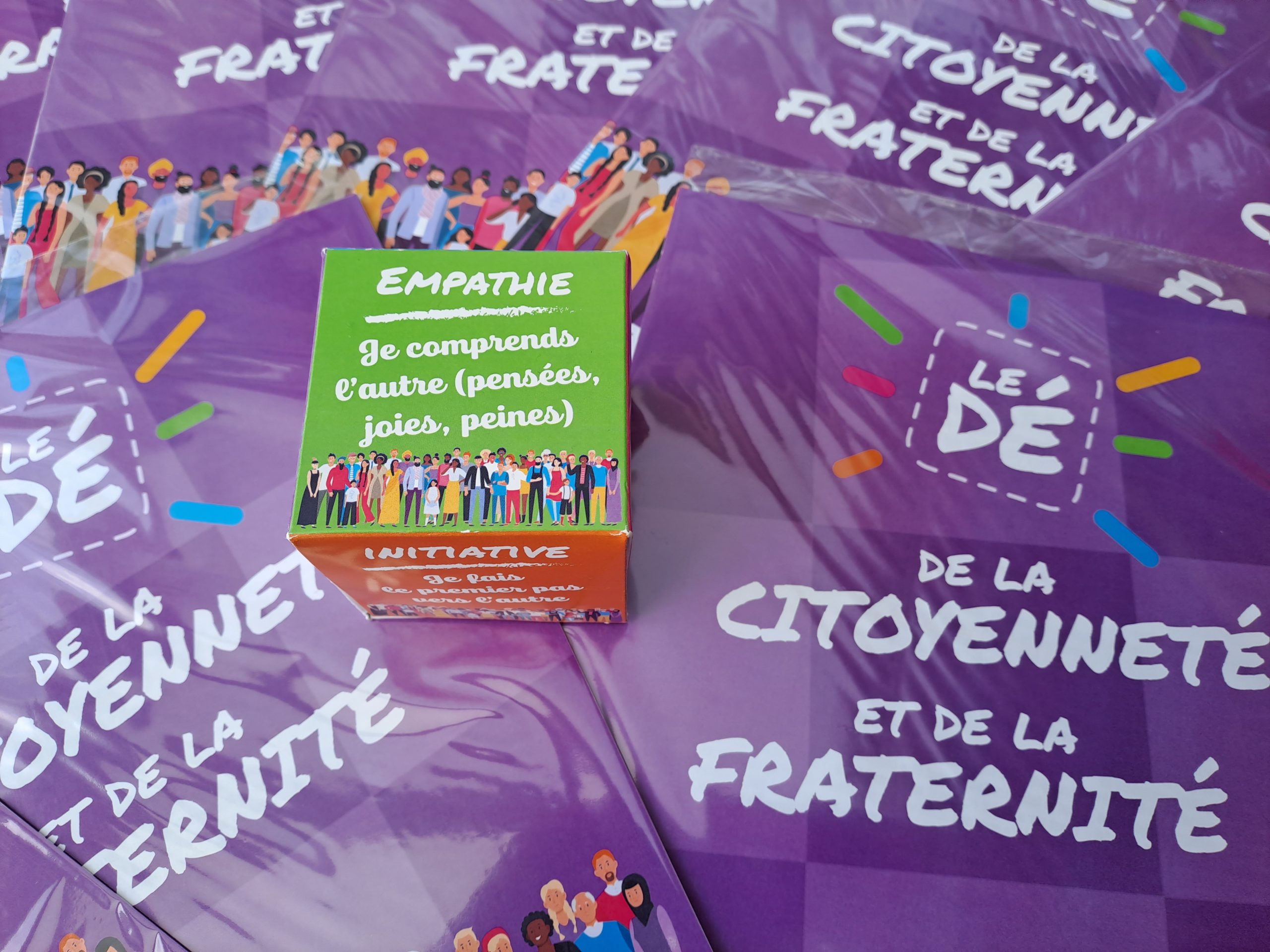 En partenariat avec le collectif JNCF, l’association Fratern’aide a assuré la promotion et la distribution de son kit « dé de la citoyenneté et de la fraternité » lors de la Journée Nationale de la Citoyenneté et de la Fraternité (JNCF) le 13 mai 2023.